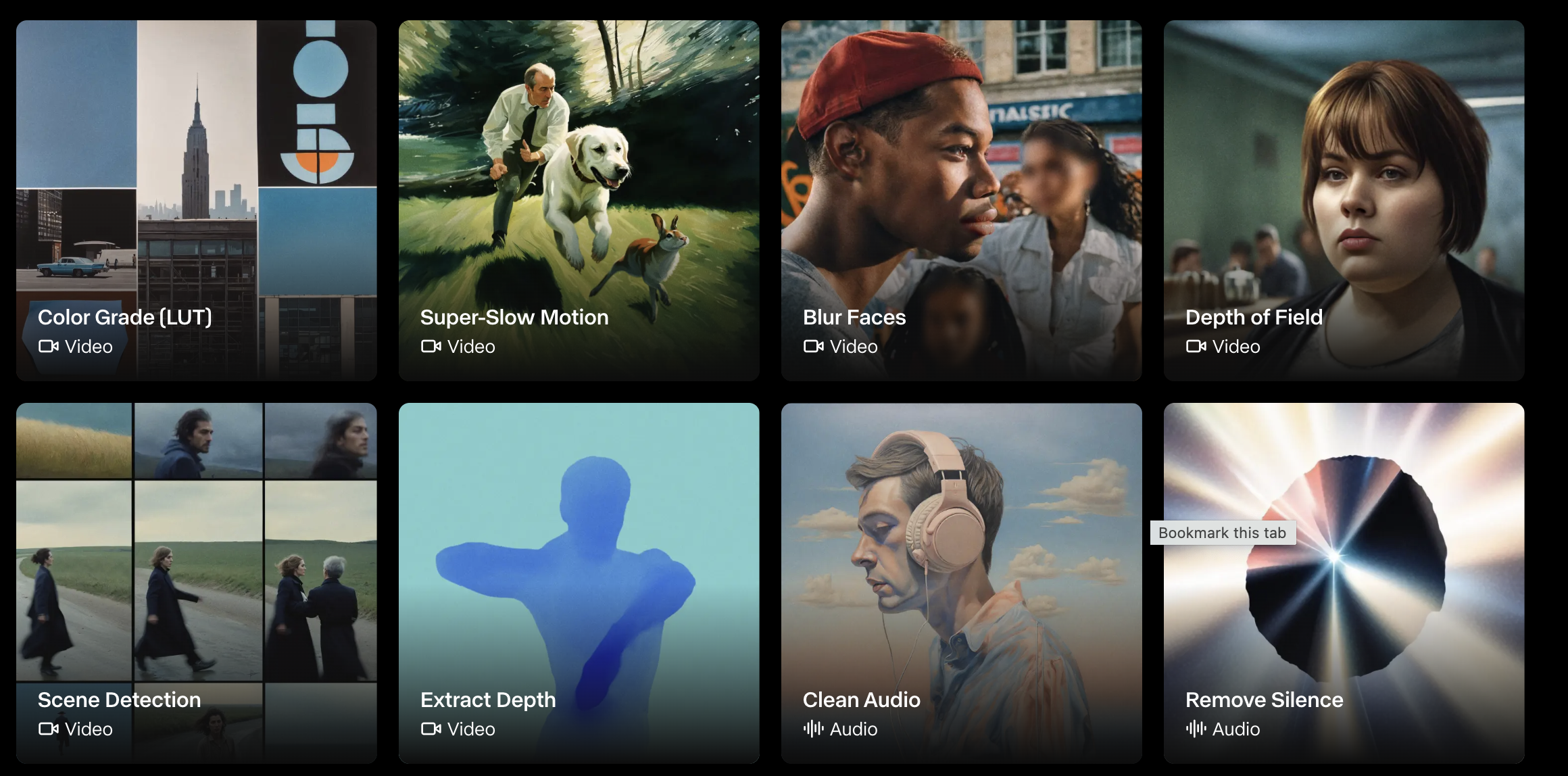 Runway’s intelligent editing tools remove the complexity of traditional post-production. Features include: